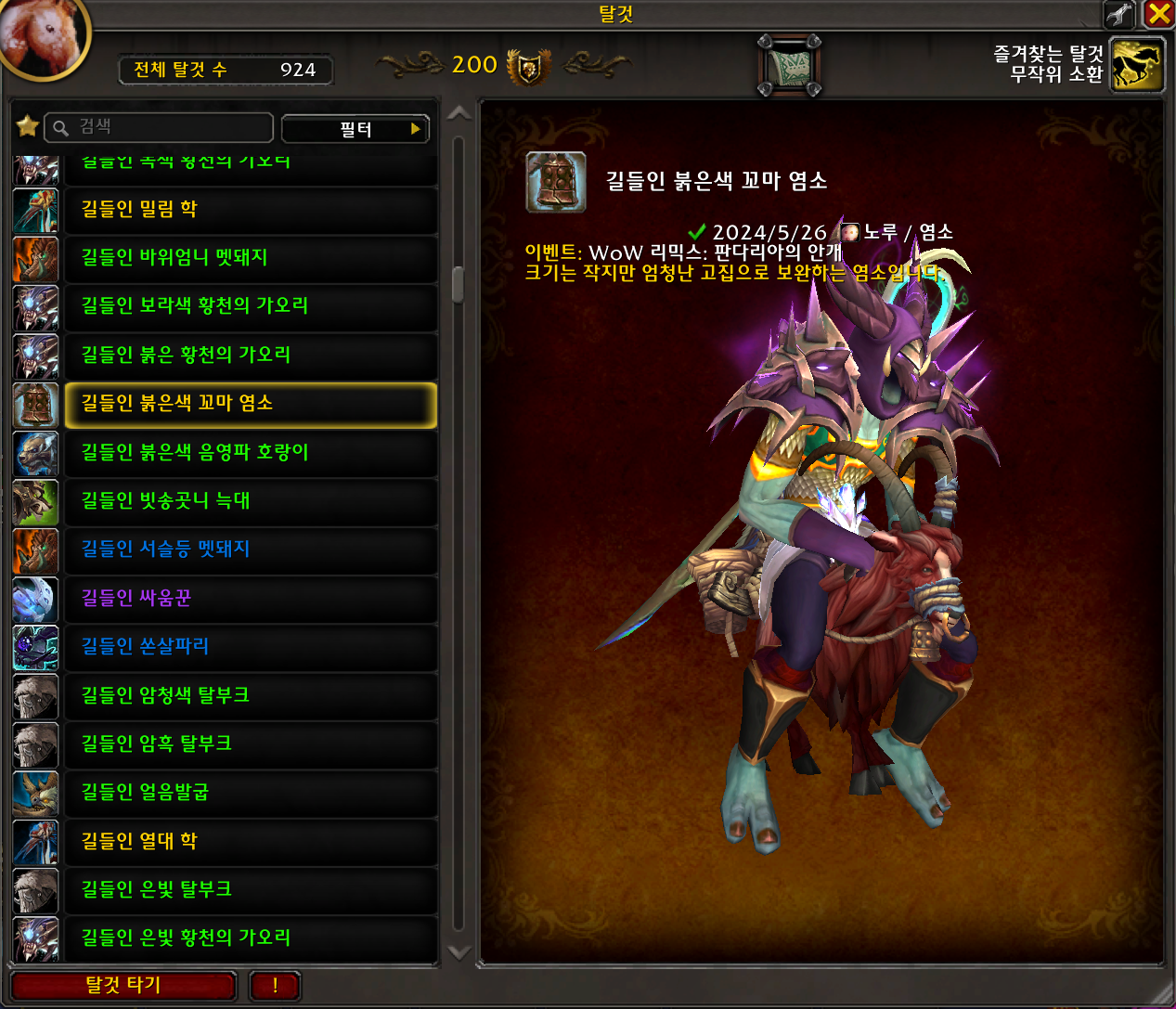 2024.05.26 길들인 붉은색 꼬마 염소 획득 924번째 탈것
