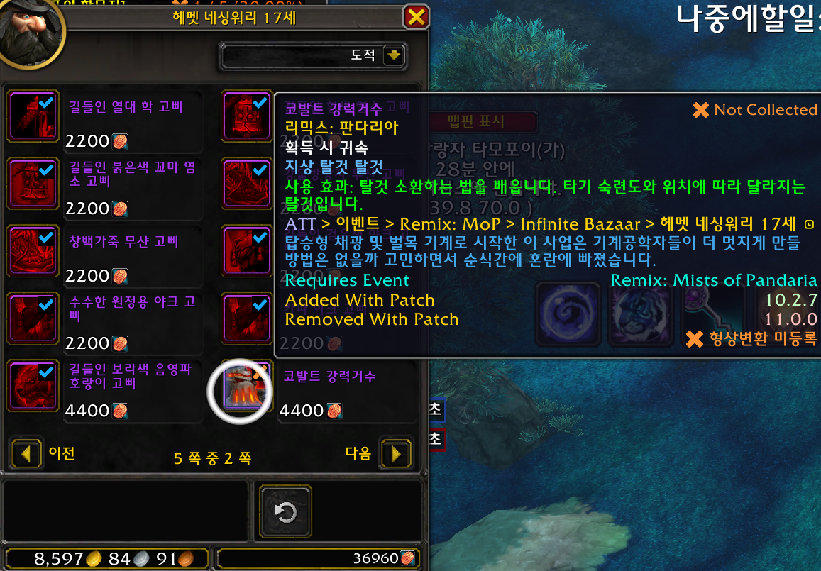 즉 기존 본섭에 있는데 판다리아 리믹스에서 구매가능한 탈것들은 뺀가격입니다.