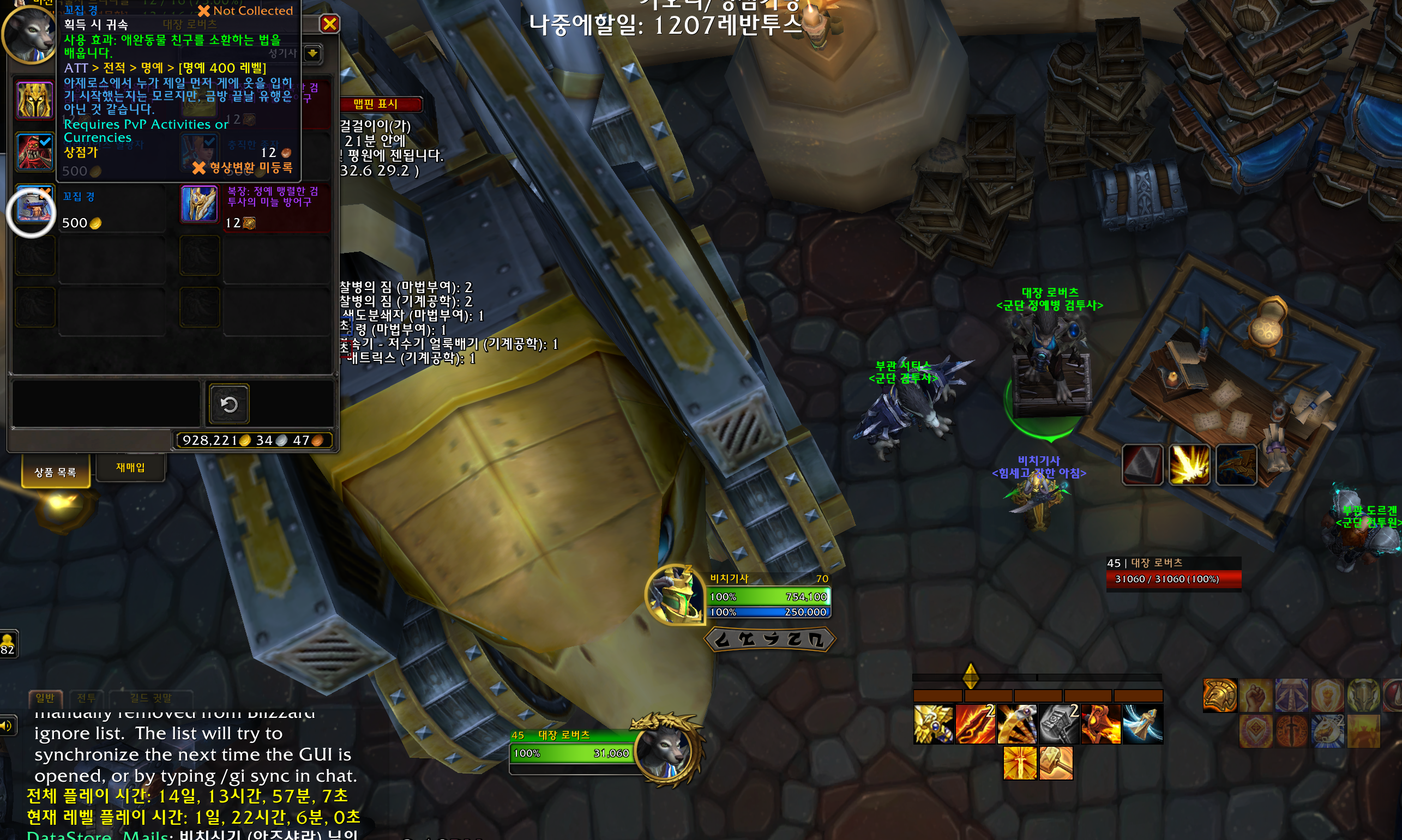 전장이랑 pvp 투기장위주로 하는 유저는 500랩이 그렇게 힘들지 않은데
