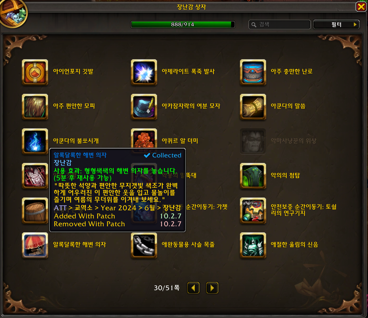 2024.06.11 알록달록한 해변 의자 획득 888번째 장난감