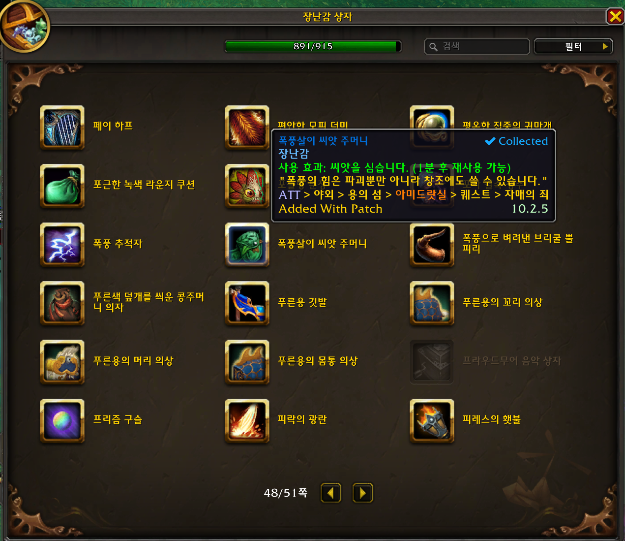 2024.06.12 폭풍살이 씨앗 주머니 획득 891번째 장난감