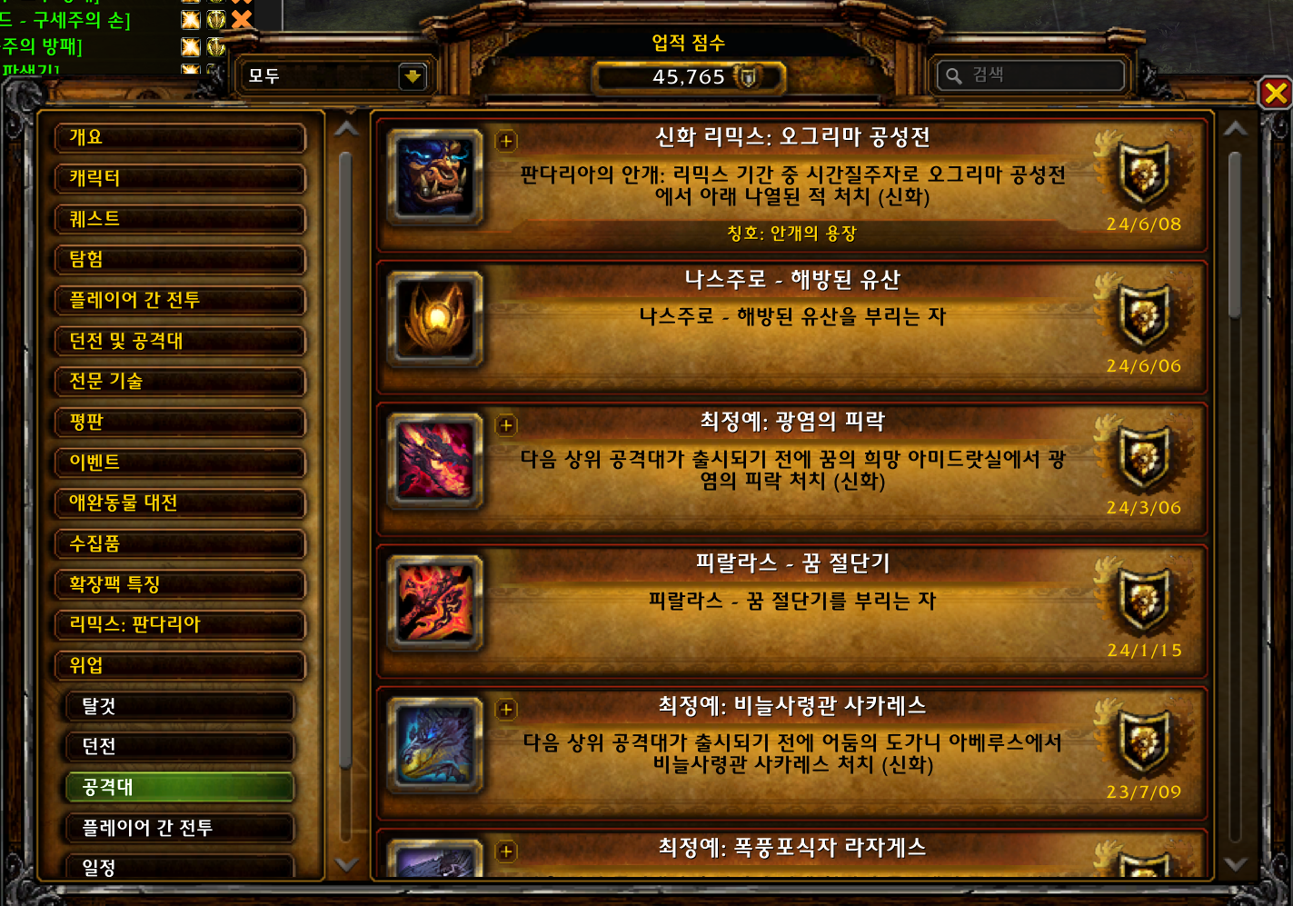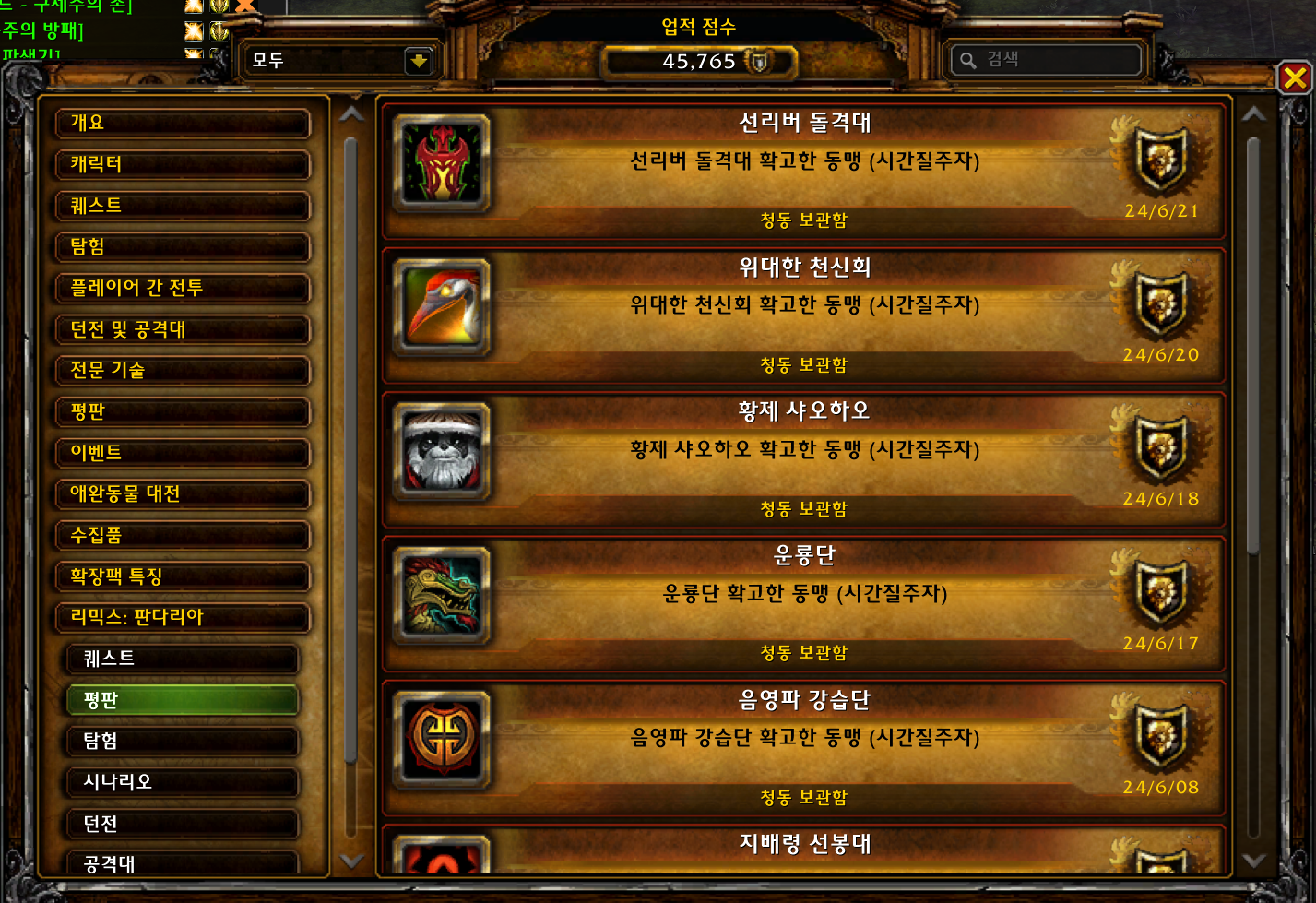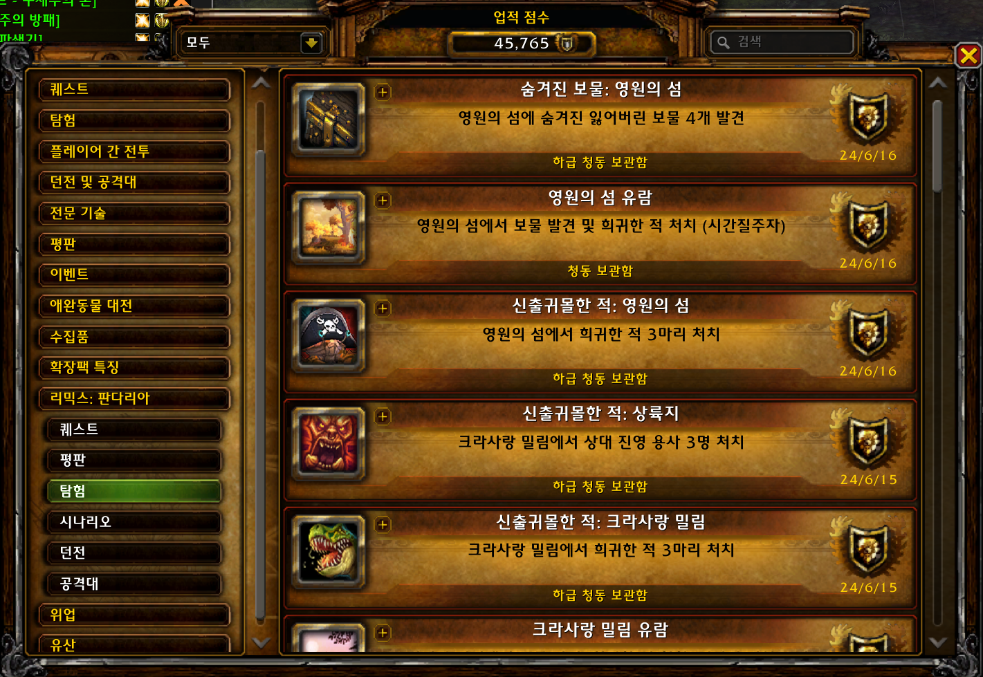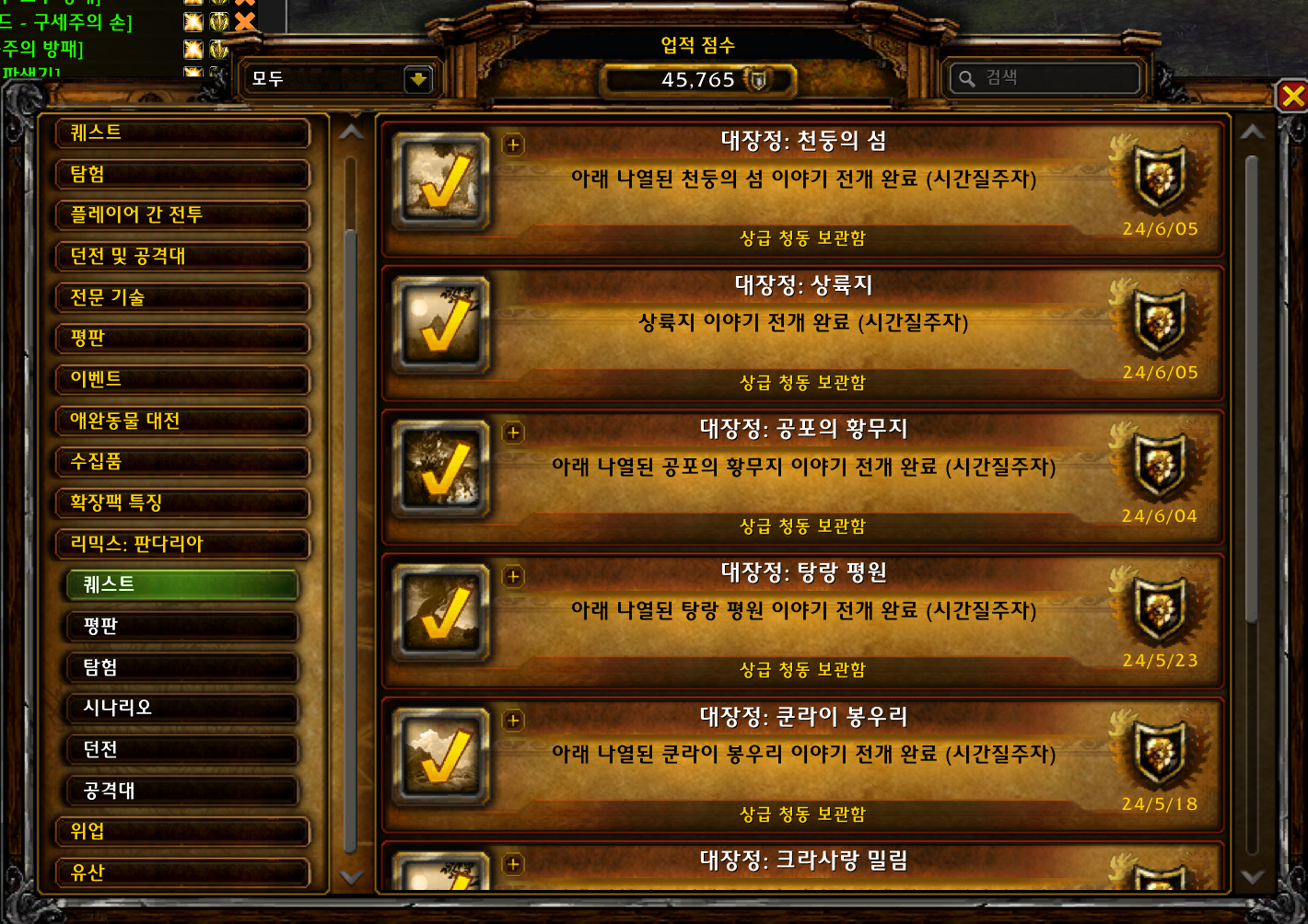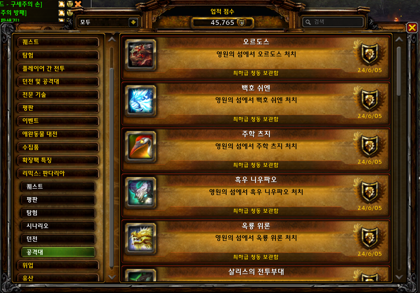 현재 본섭에서 획득불가능하고 과거 판다리아때만 획득가능한 업적인데 판다리믹스에서 획득가능합니다.
