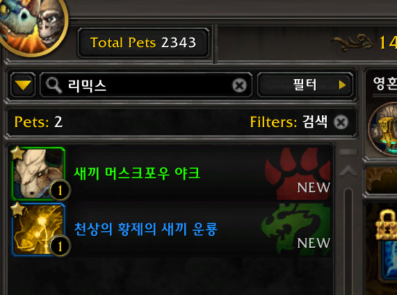 판다리믹스전용 애완동물은 천상의 황제의 새끼 운룡 / 새끼 머스크포우 야크 2마로 전부 업적완료 보상입니다.