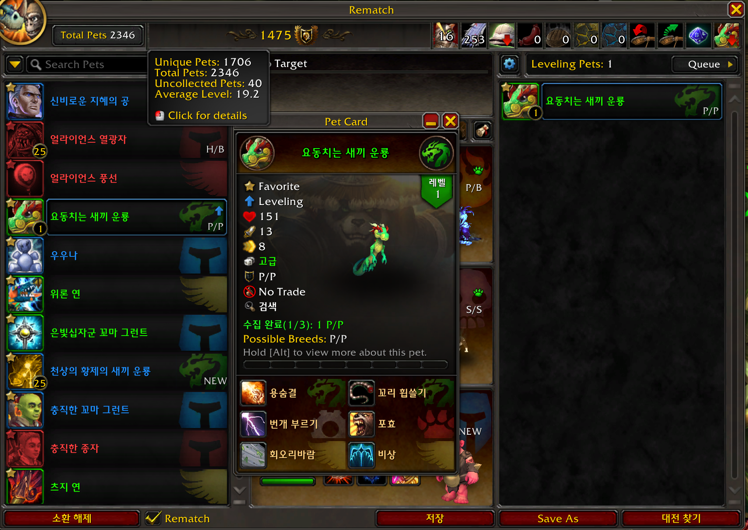 요동치는 새끼 운룡 애완동물은 판다리아 확장팩 애완동물로 도전모드 관련으로 얻는 애완동물인데