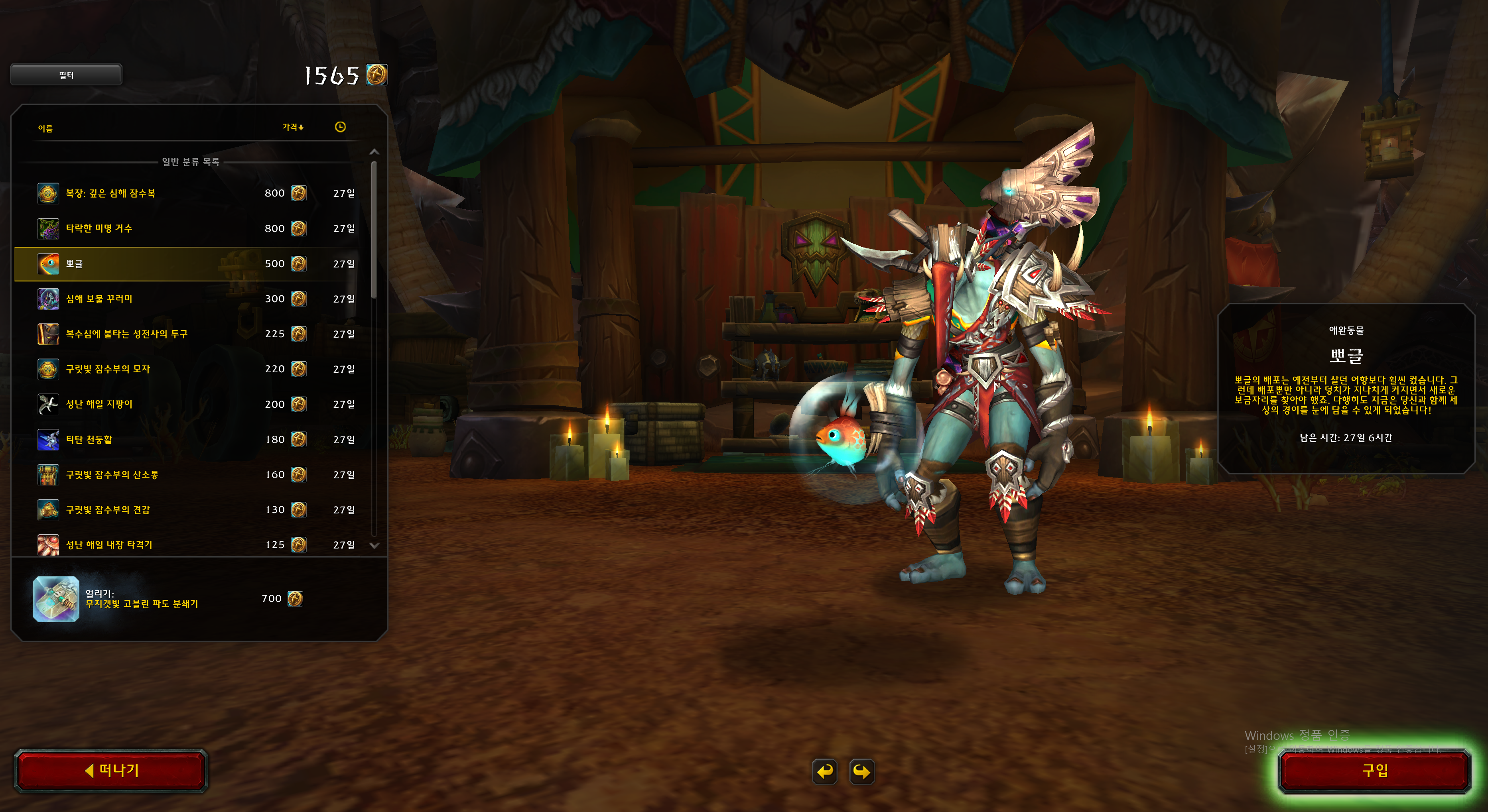 뽀글 애완동물은 7월 교역소 상품입니다.