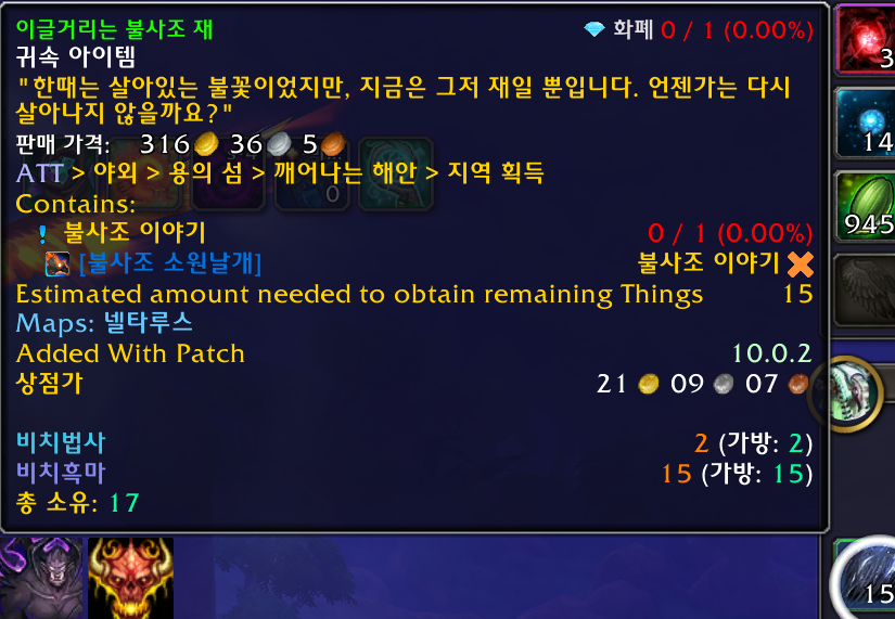 반짝이는 불사조 불씨 1개 / 신성한 불사조 재 10개 / 마력을 잃은 불사조 재 20개를 다 모았으면