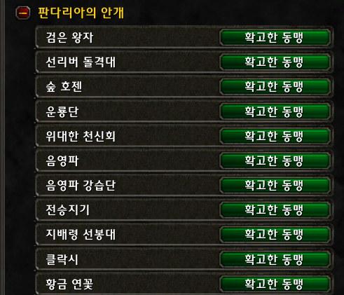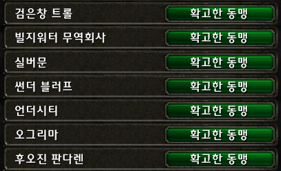 얼라이언스 연합(스톰윈드 / 길니아스 / 놈리건 / 다르나서스 / 아이언포지 / 엑소다르 / 투슈이 판다렌)
