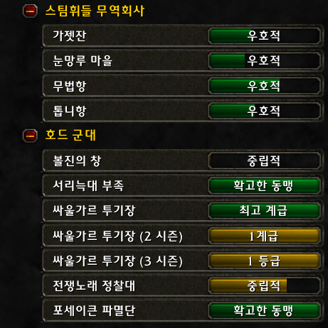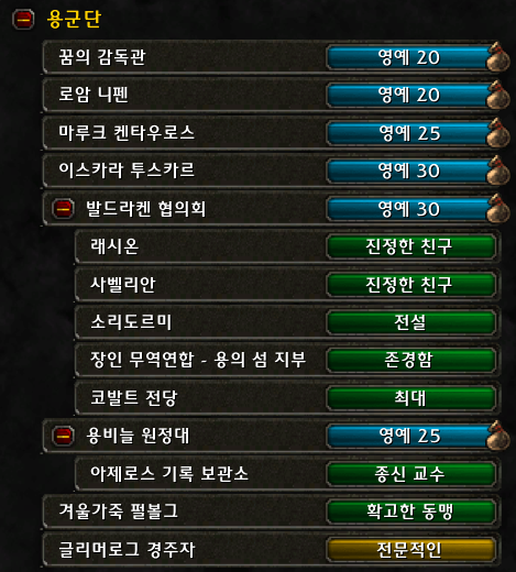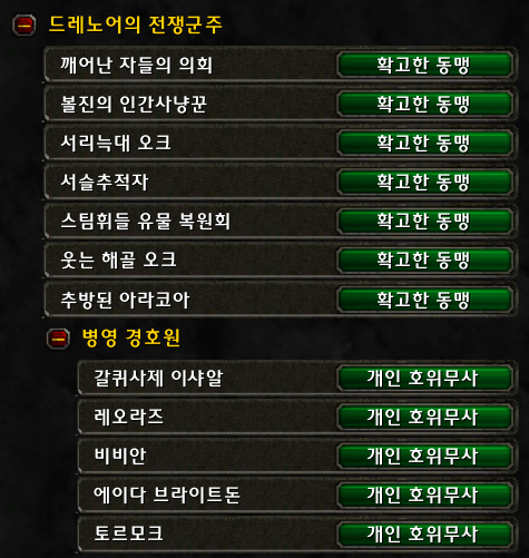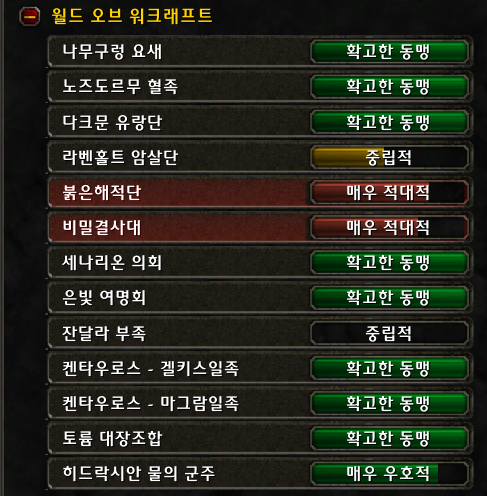 해당글에서는 해당평판을 올리는 방법보다는 와우상에 존재하는 평판의 종류와 갯수에 중점을 두고 작성한 글입니다.