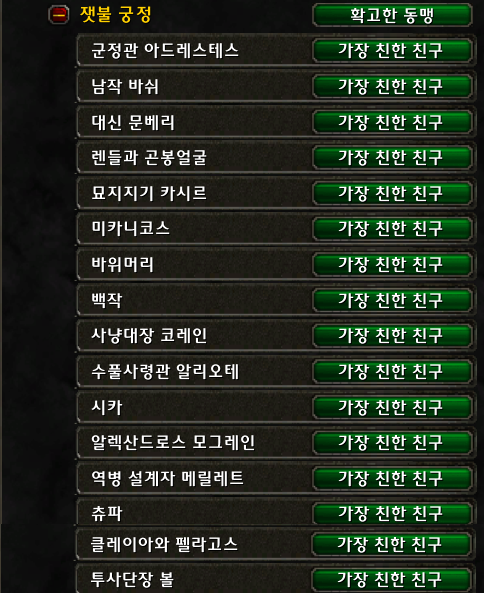 지인 - 일원 - 동맹 - 송곳니 - 친구 - 진정한 친구 순이고 올려야하는 평판은 총 42000