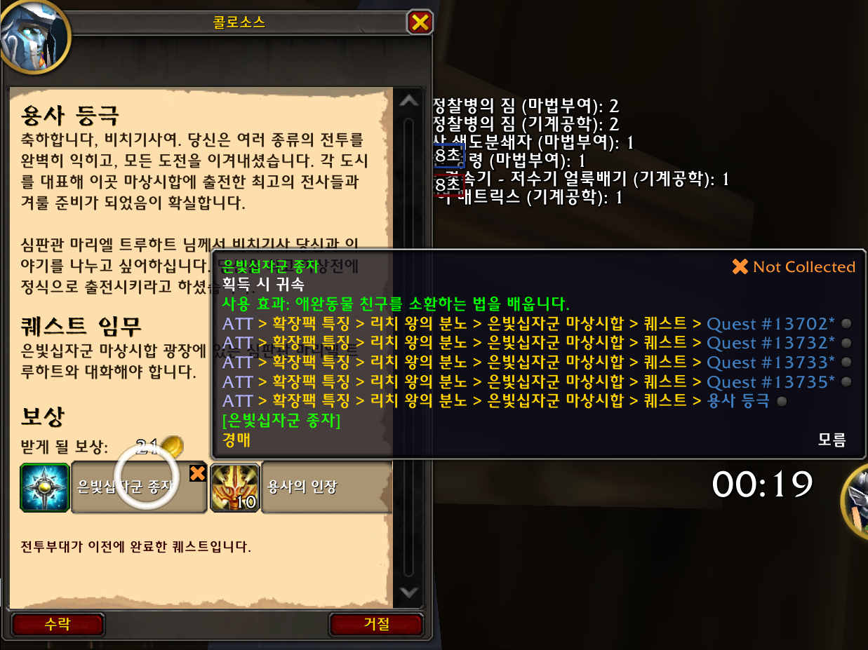 용사 등극 퀘를 주고 보상으로 은빛십자군 종자를 줍니다.