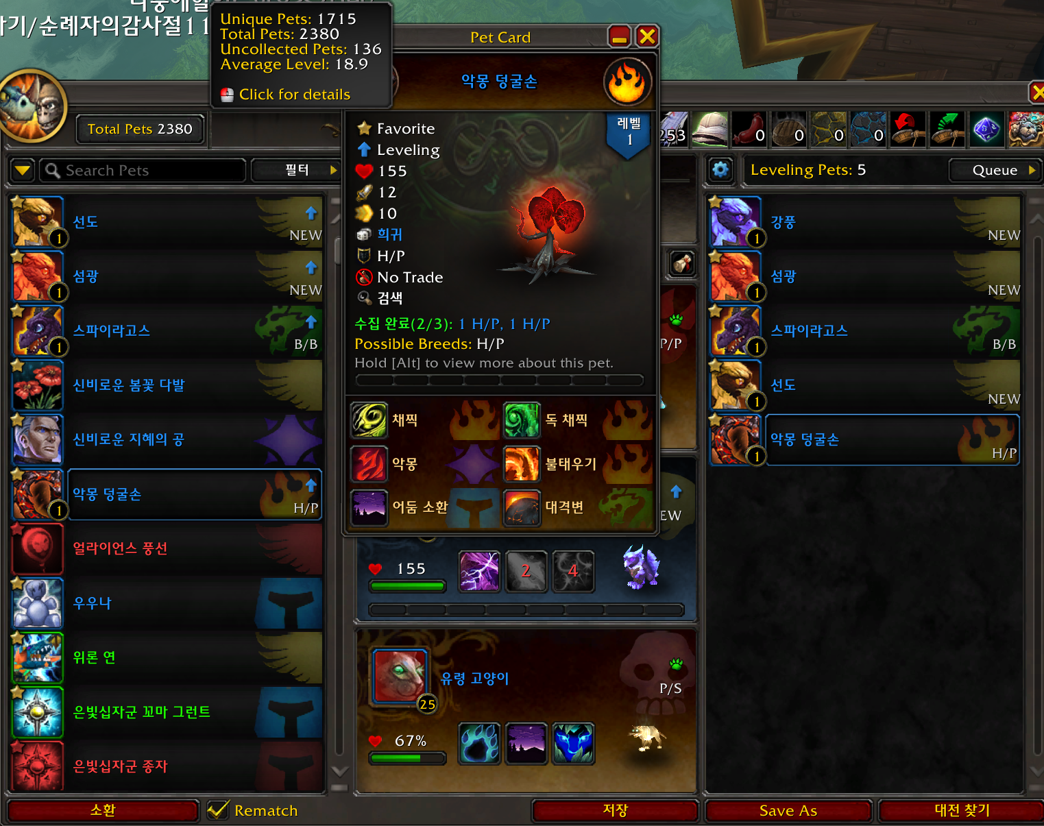 총 얻어야 하는 애완동물은 악몽 덩굴손과 브루트 2마리입니다. 오늘 악몽 덩굴손을 획득하였고 브루트 얻을때까지 계속 해야겠네요.