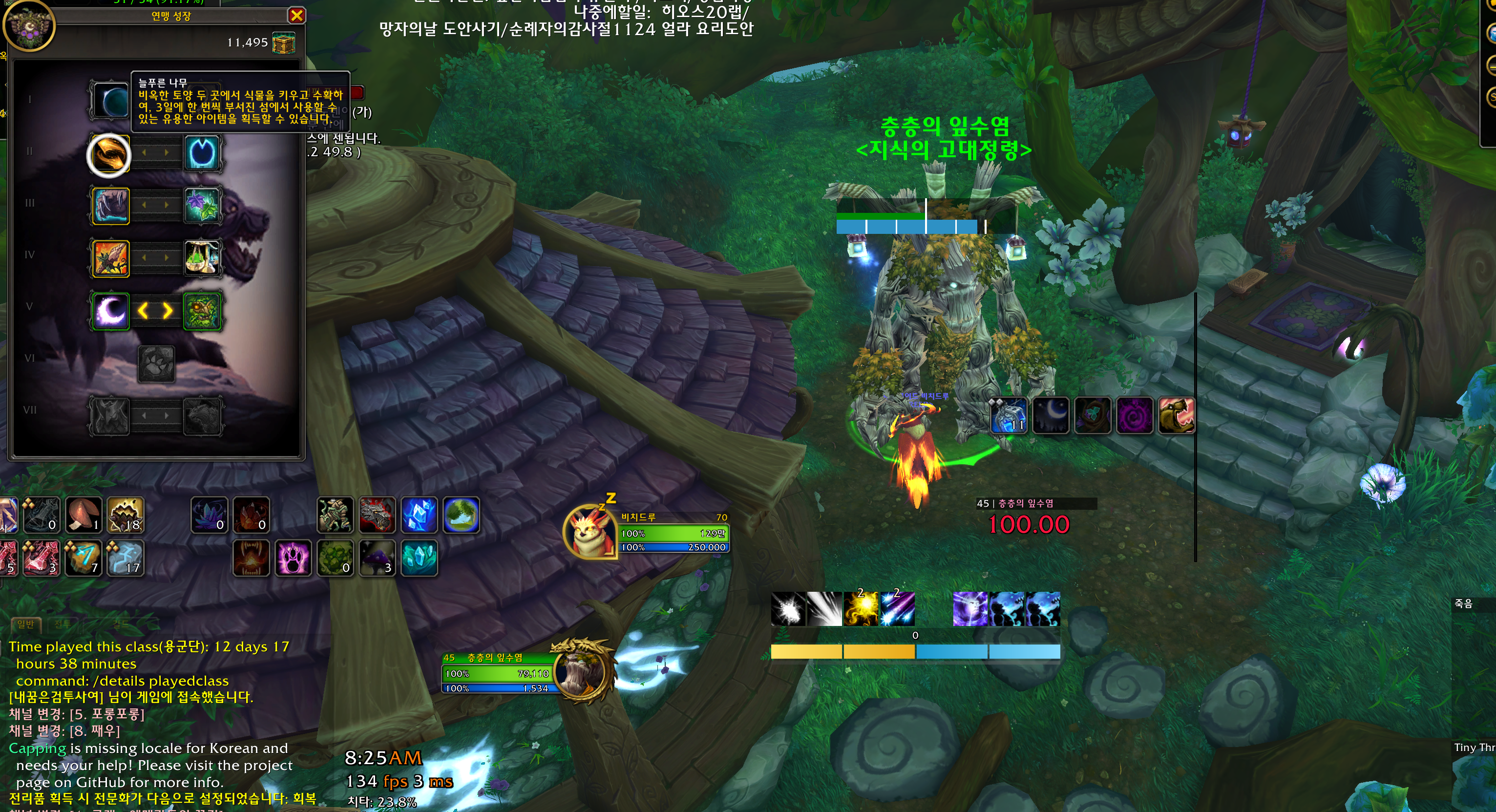 드루이드 연맹전당 꿈숲에 연맹전당 강화해주는 npc에게서