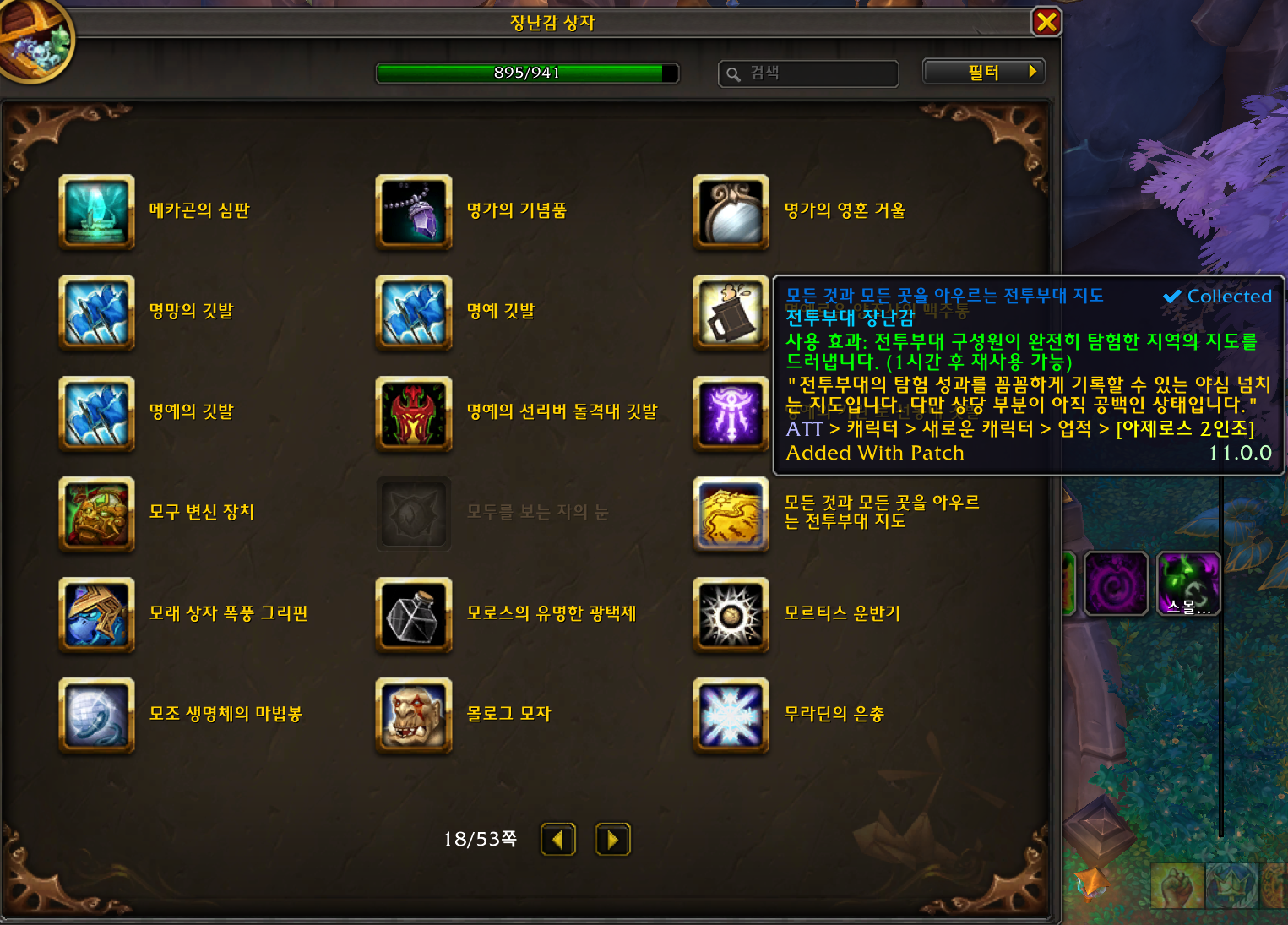 아제로스 2인조 업적보상입니다. 만랩2개가 있으면 자동으로 장난감에 추가됩니다.