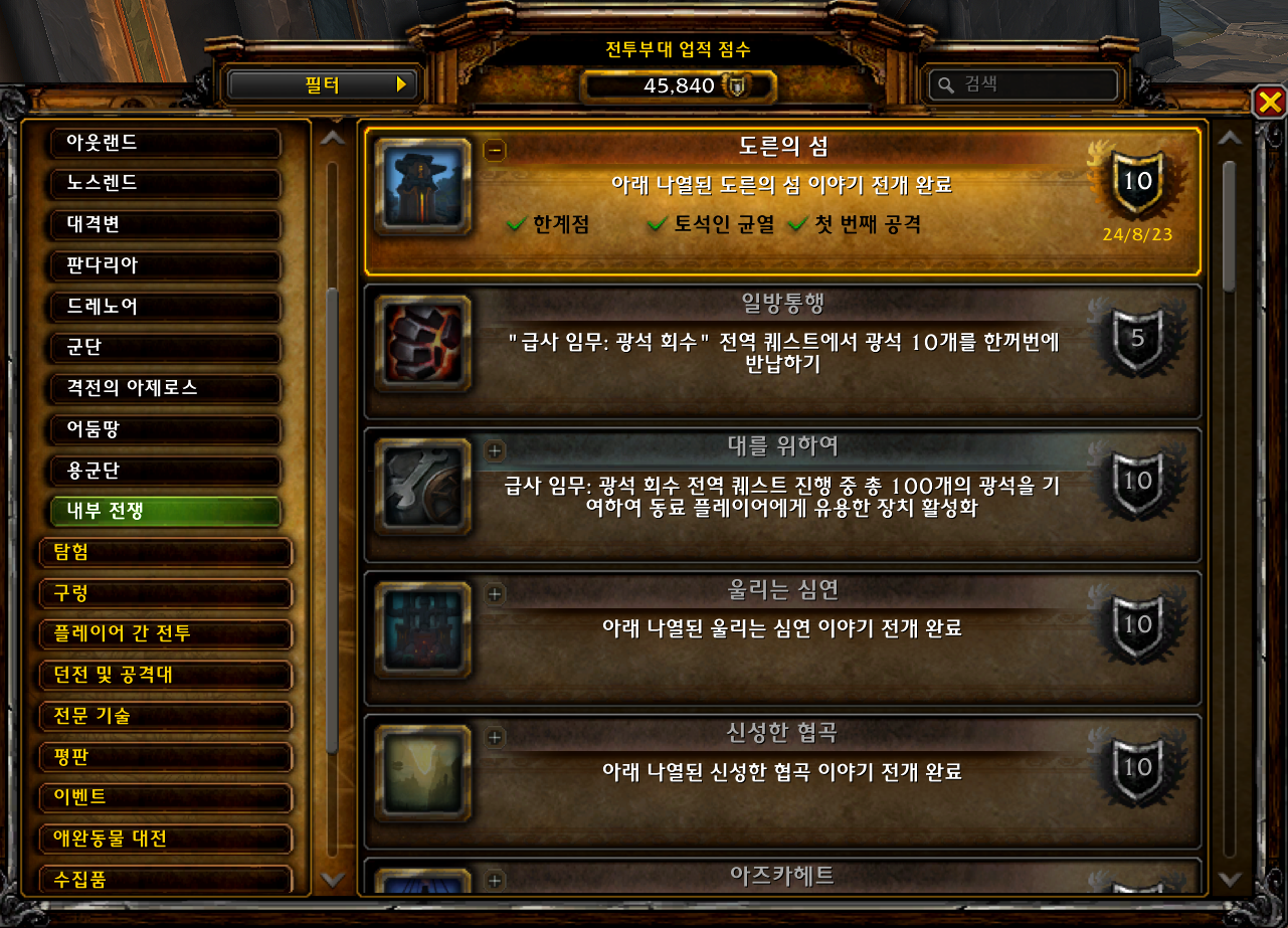 도른의 섬 업적은 내부 전쟁 확장팩 업적으로 내부 전쟁 첫지역 현자입니다.