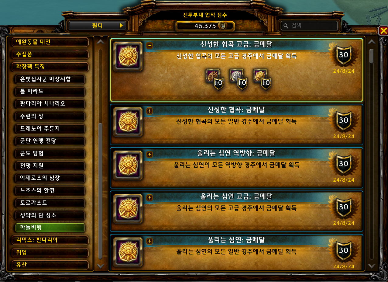 | [와우업적]신성한 협곡: 금메달 (0) | 2024.08.24 |