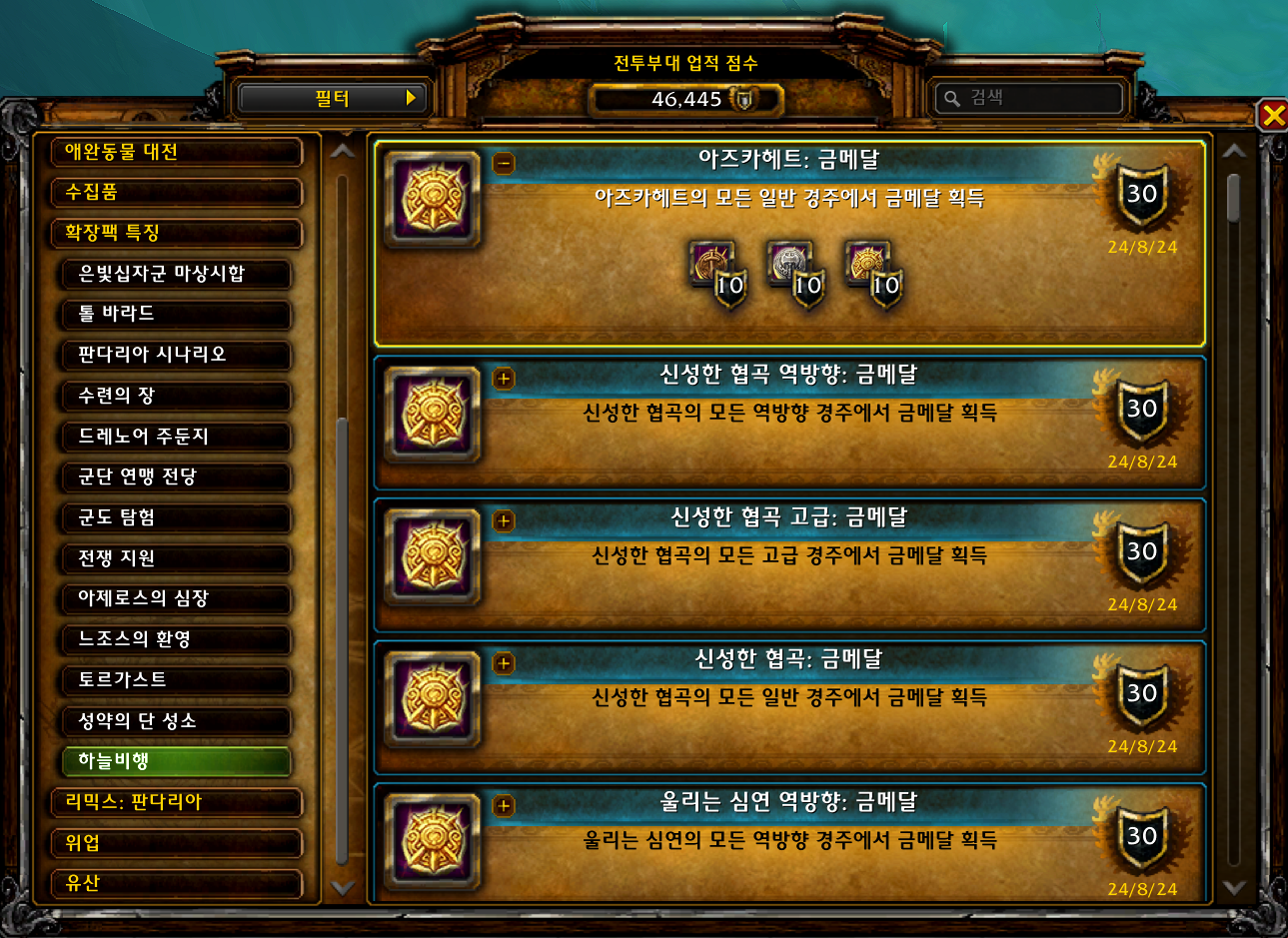 | [와우업적]아즈카헤트 역방향: 금메달 (0) | 2024.08.25 |