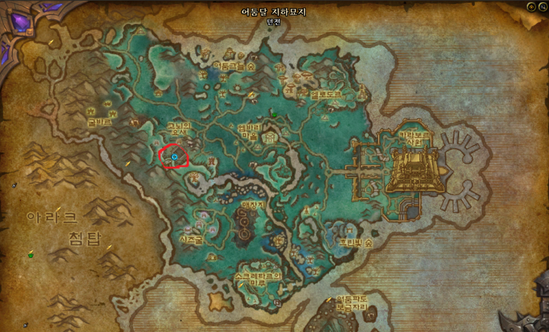 상록숲 입구위치는 고르그론드에 있습니다.