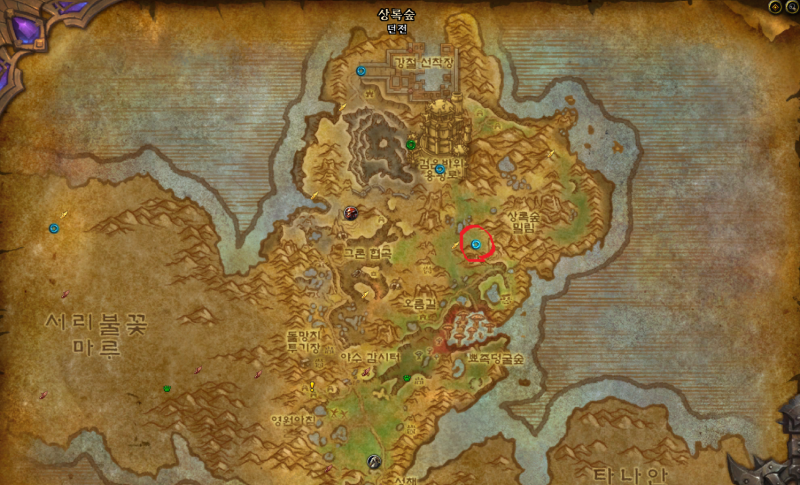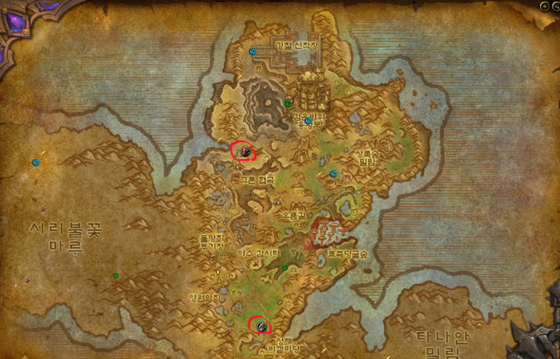 검은바위 첨탑 상층 입구위치는 불타는평원 - 검은바위 산 안에 있습니다.