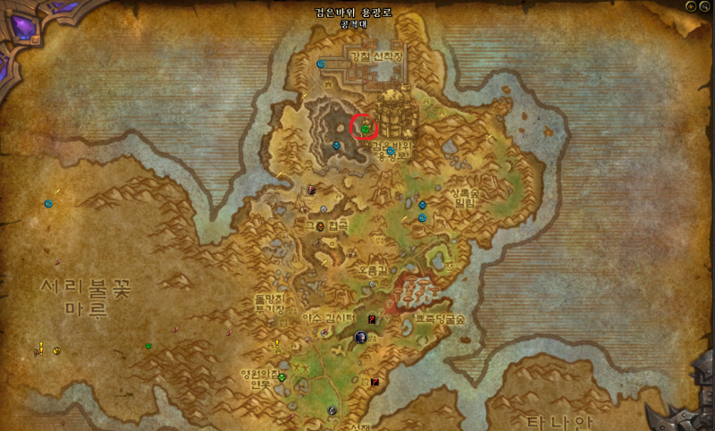 검은바위 용광로 입구위치는 고르그론드에 있습니다.