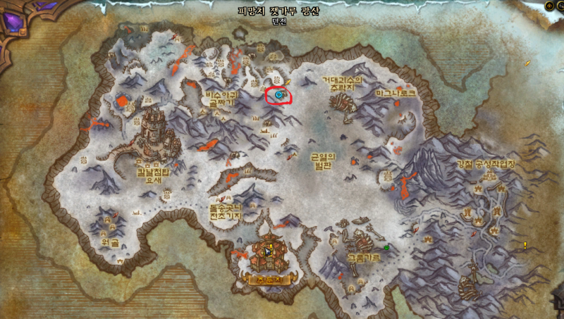 피망치 잿가루 광산 입구위치는 서리불꽃 마루에있습니다.