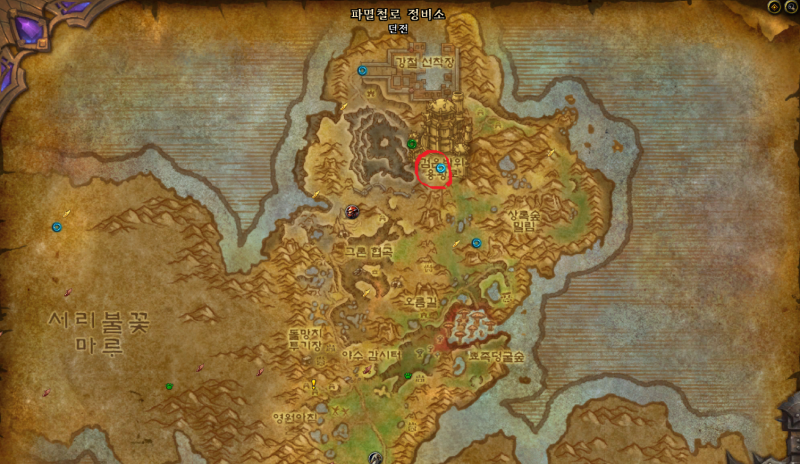 파멸철로 정비소 입구위치는 고르그론드에 있습니다.