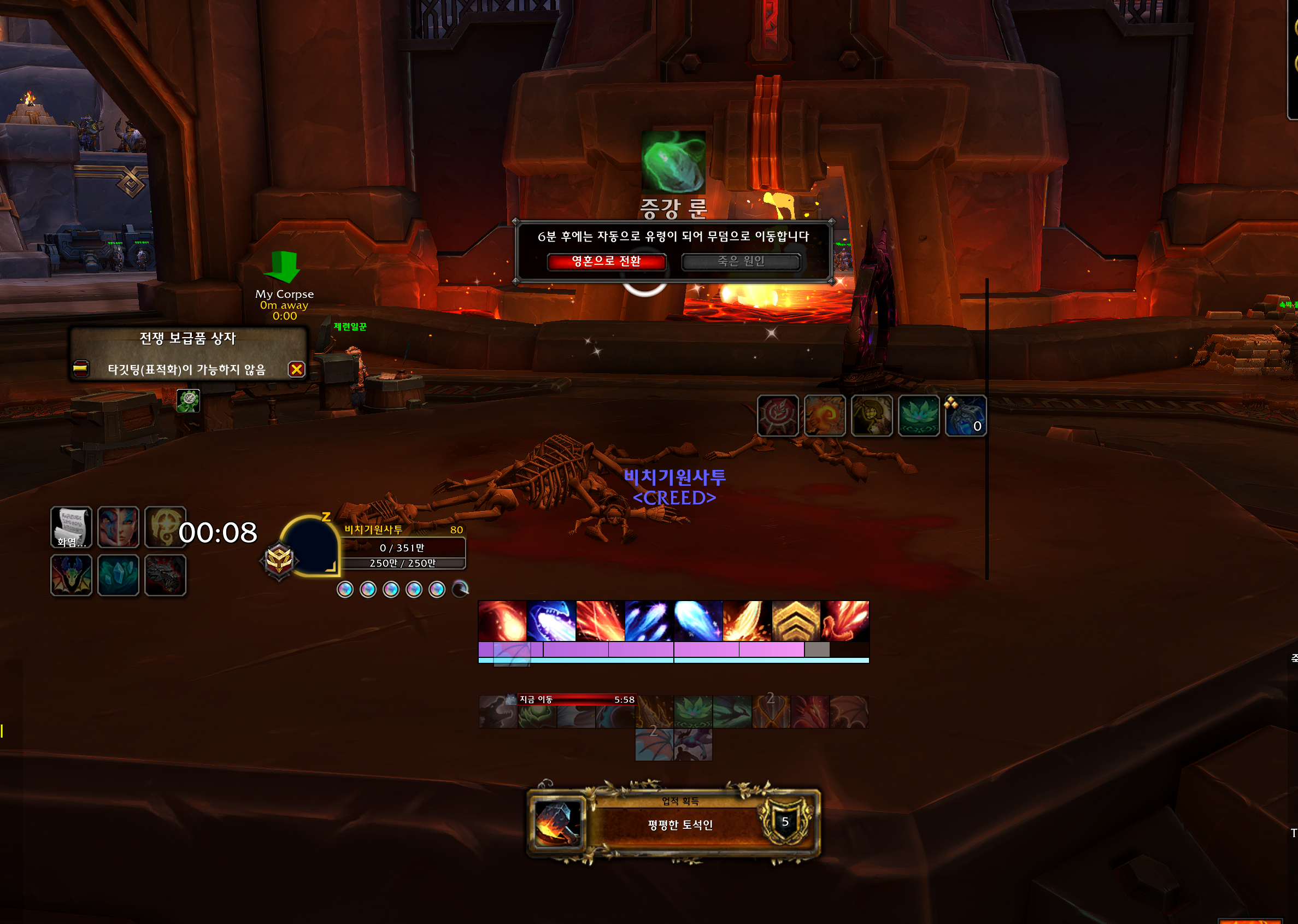 평평한 토석인 업적은 내부전쟁업적으로 제련터에서 죽으면 됩니다.