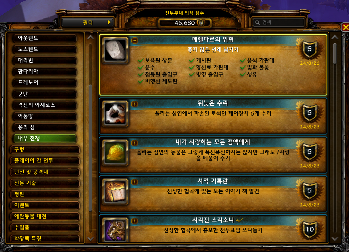 | [와우업적]뒤늦은 수리 (11) | 2024.08.26 |