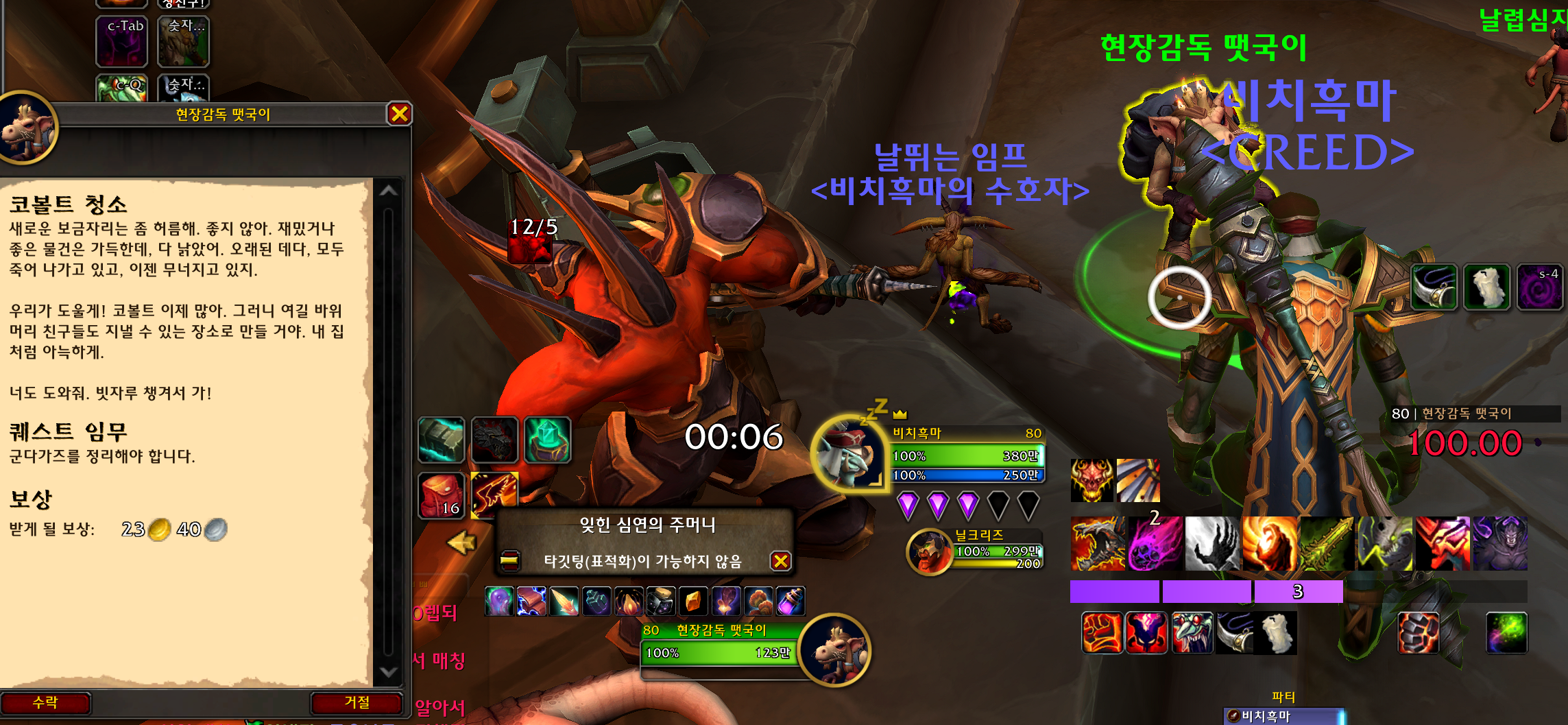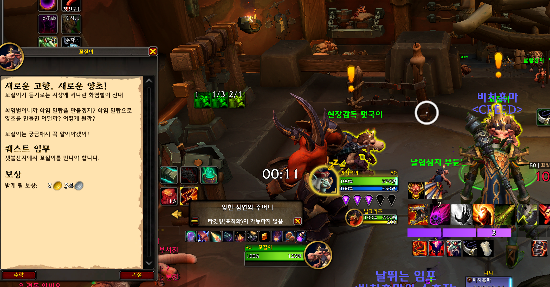 현장감독 땟국이가 주는 코볼트 청소 연퀘를 쭉 완료하면 됩니다.