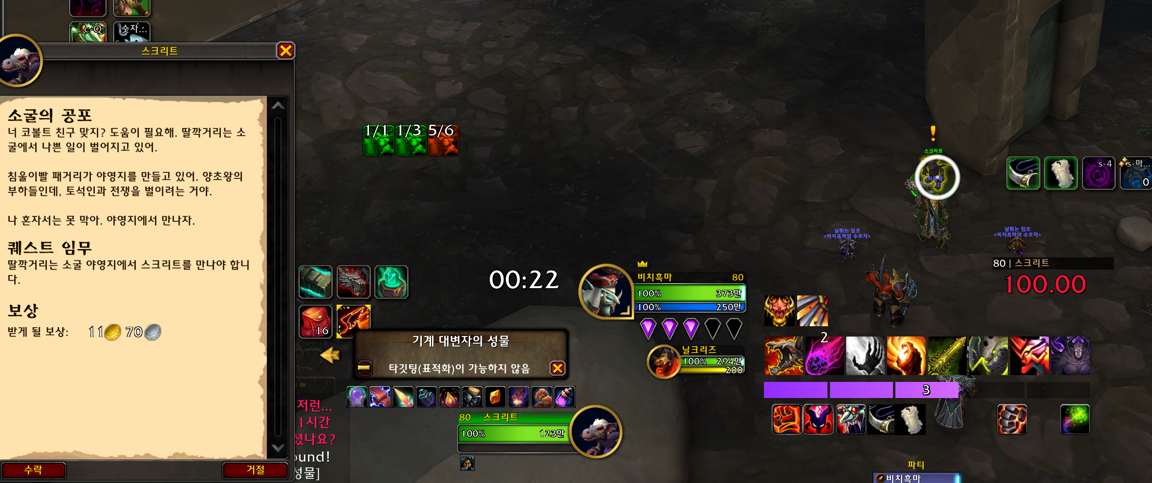 스크리트가 주는 소굴의 공포 연퀘를 쭉 완료하면 됩니다.
