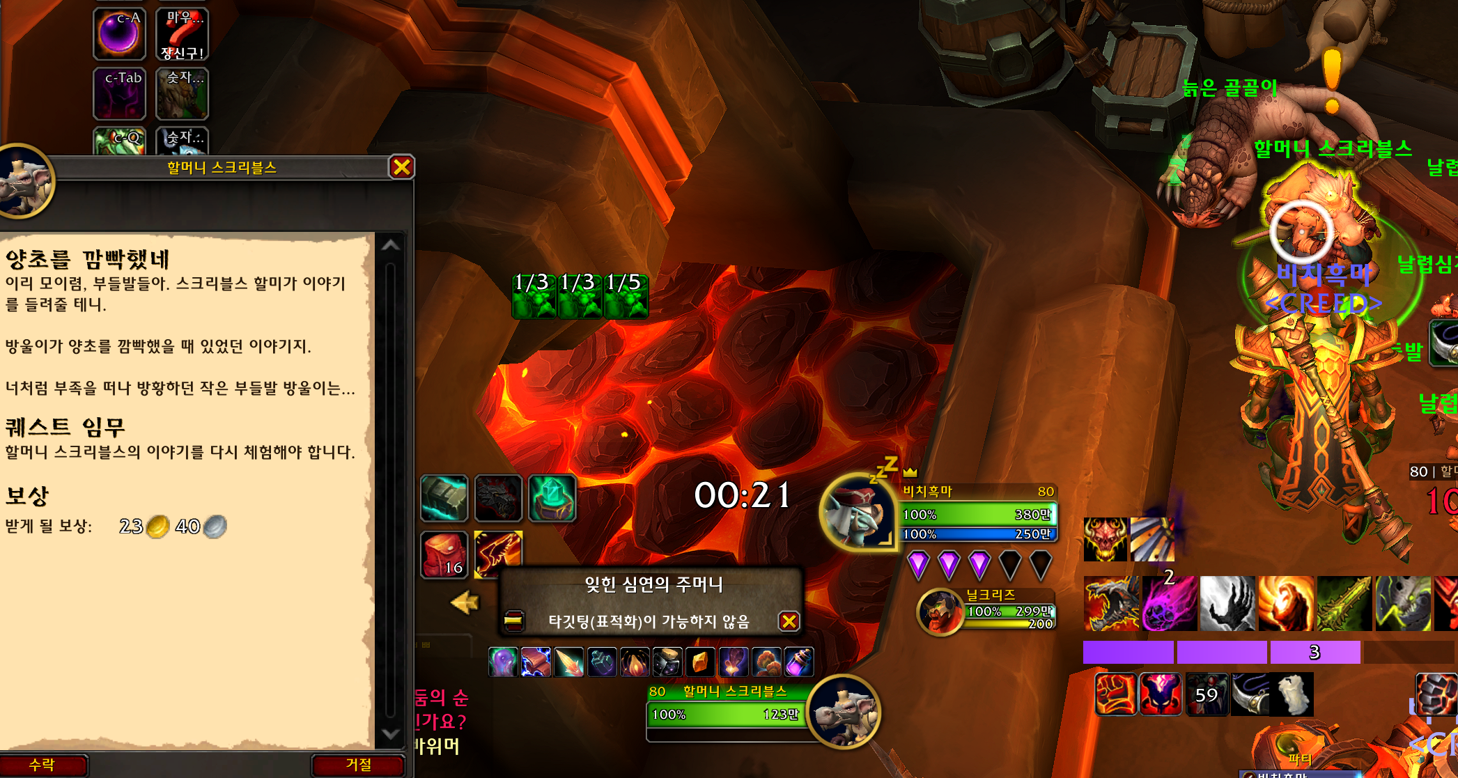 할머니 스크리블스가 주는 양초를 깜빡했네 연퀘를 쭉 완료하면 됩니다.