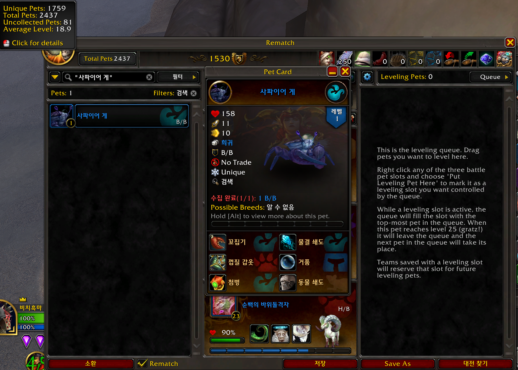 사파이어 게 애완동물은 내부전쟁 확장팩 애완동물로