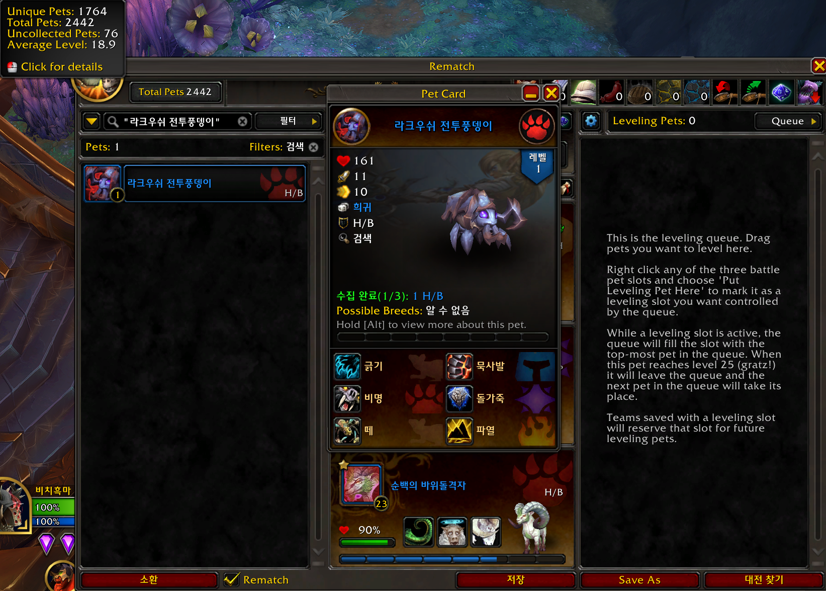 2024.09.01 라크우쉬 전투풍뎅이 획득 1764번째 애완동물