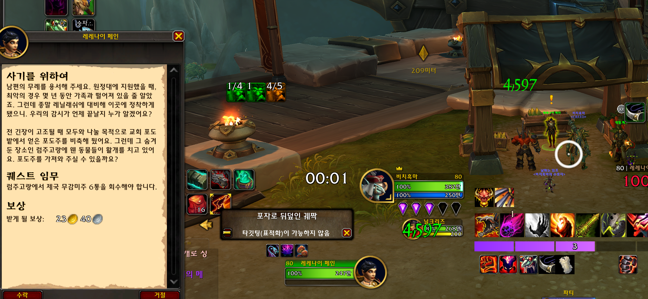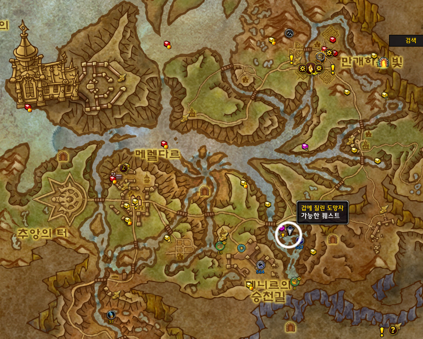 메라 아쉴드가 주는 겁에 질린 도망자 / 횃불의 빛 연퀘를 쭉 완료하면 됩니다