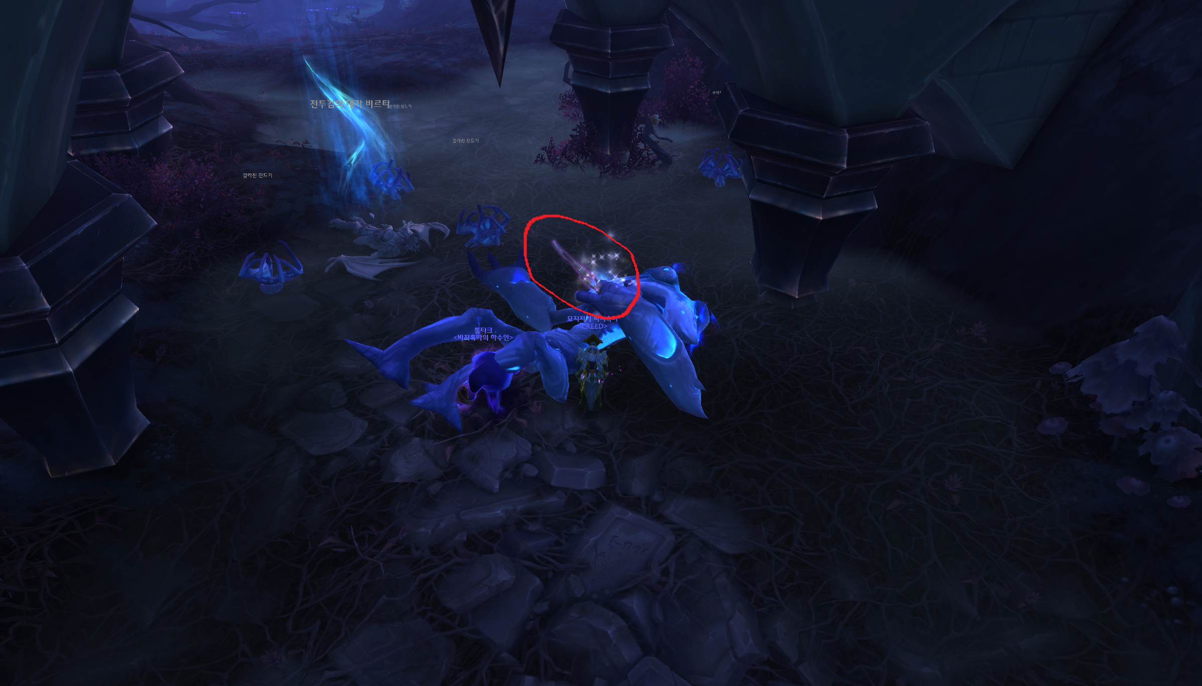 클릭하면 담대한 자의 레이피어라는 몬스터가 나옵니다. 몬스터를 잡으시면 됩니다.