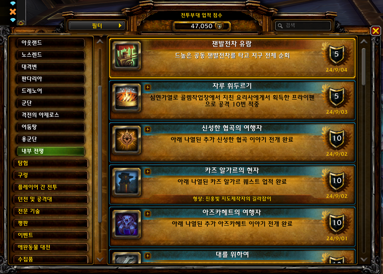 | [와우업적]내부 전쟁 (2) | 2024.09.05 |