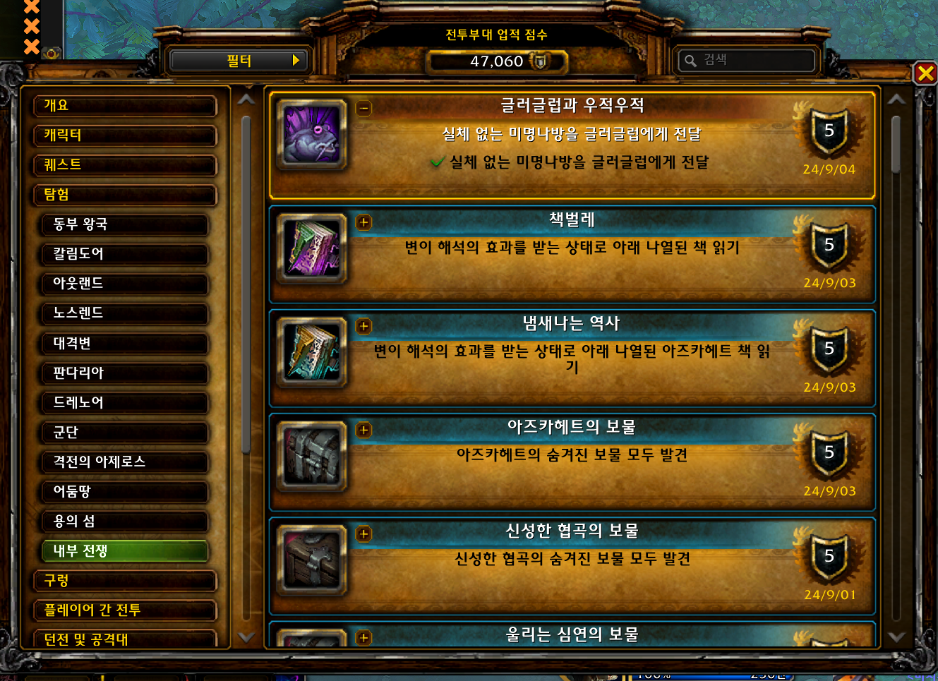 | [와우업적]책벌레 (2) | 2024.09.03 |