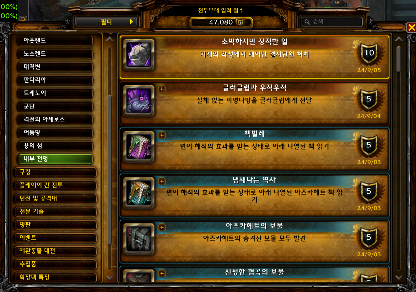 | [와우업적]책벌레 (2) | 2024.09.03 |