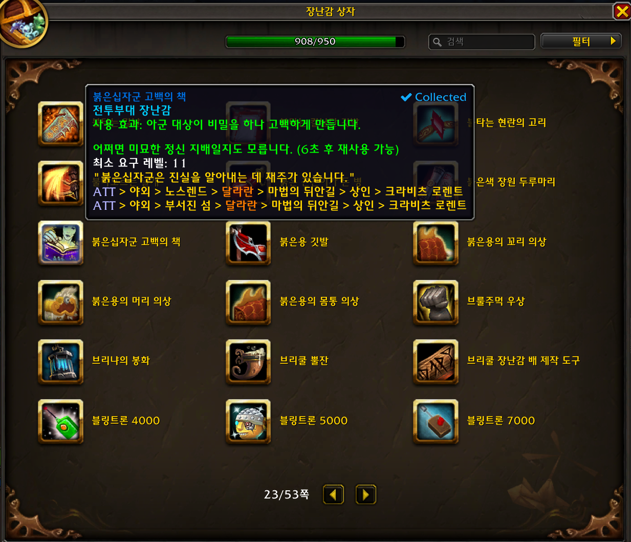 2024.09.06 붉은십자군 고백의 책 획득 908번째 장난감