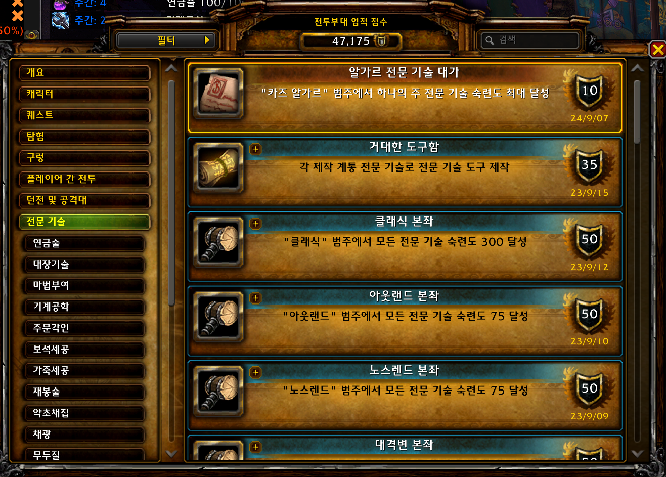 알가르 전문 기술 대가 업적은 내부전쟁 확장팩 전문기술 1개 만숙을 찍는 업적입니다.