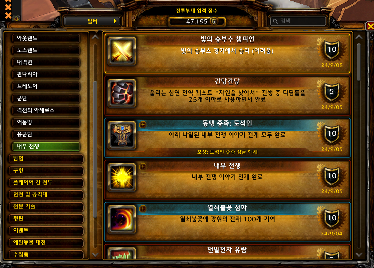 | [와우업적]내부 전쟁 (2) | 2024.09.05 |