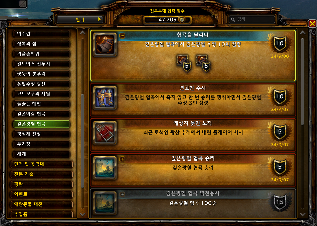 | [와우업적]깊은광혈 협곡에서의 승리 (0) | 2024.09.08 |