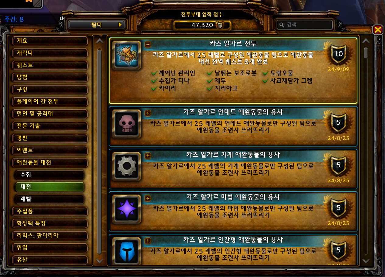 | [와우업적]카즈 알가르 기계 애완동물의 용사 (0) | 2024.08.25 |