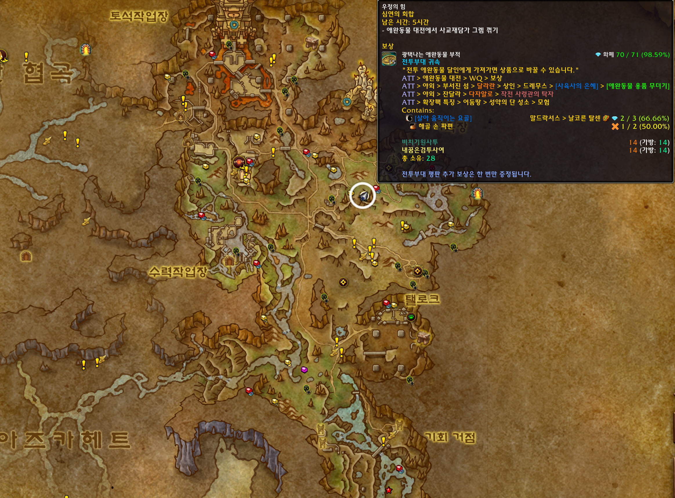 카즈 알가르 전투 업적은 내부전쟁 확장팩 업적으로 서로다른 애완동물대전 전역퀘 8개를 완료하는 업적입니다.