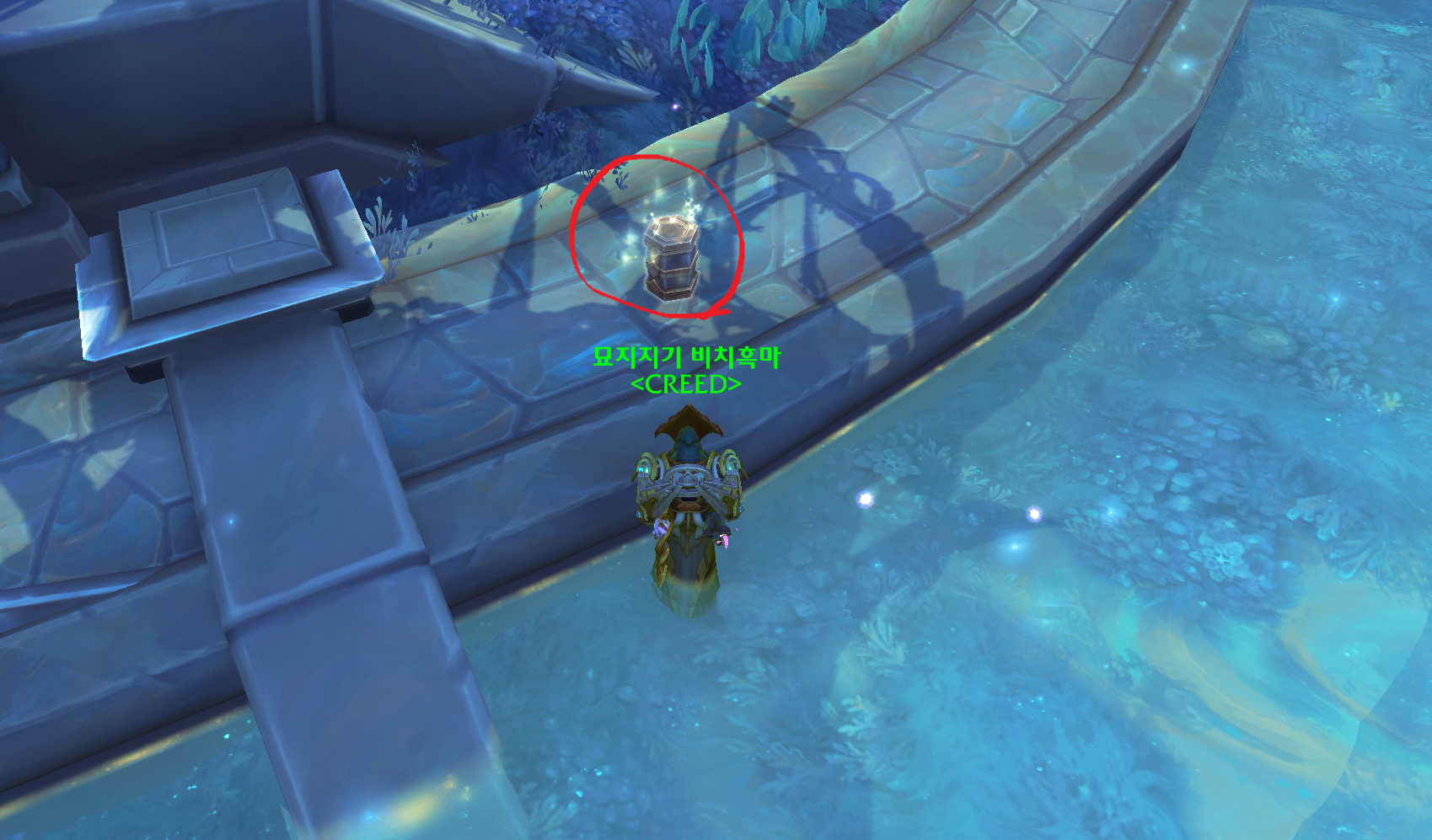 다음과 같은 장소가 있는데 어둠감시자는 내가 죽었을때만 보입니다. 따라서 몬스터에게 죽으면됩니다.