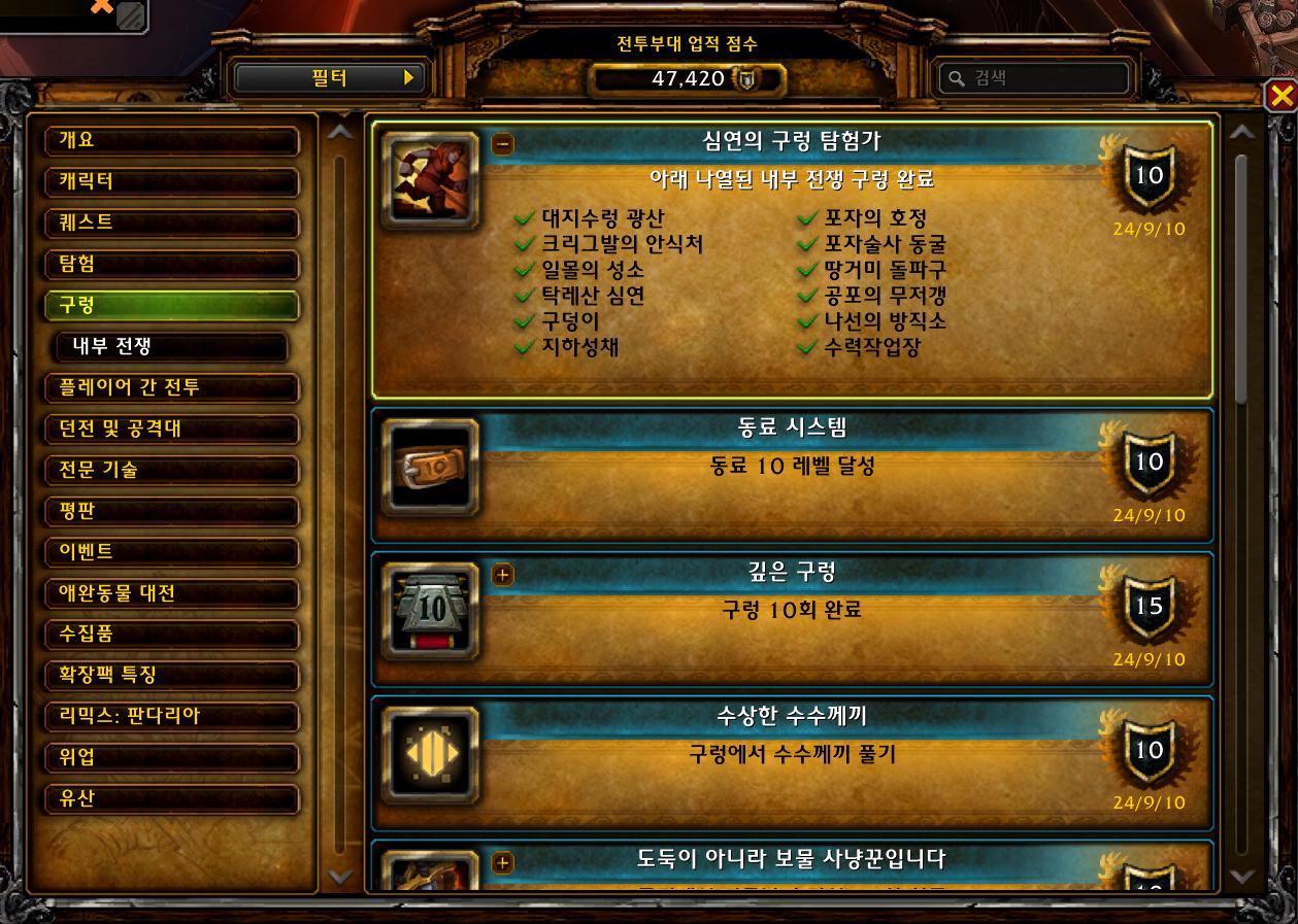 2024.09.10 심연의 구렁 탐험가 획득 10점짜리 47420점