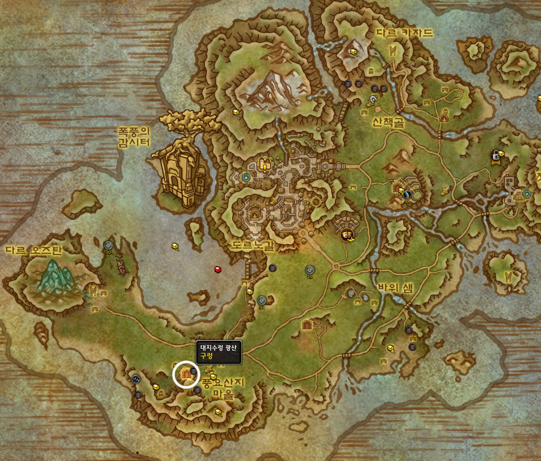 대지수렁 광산에서의 발견 업적은 내부전쟁 확장팩 업적으로 구렁에서 하는 업적입니다.