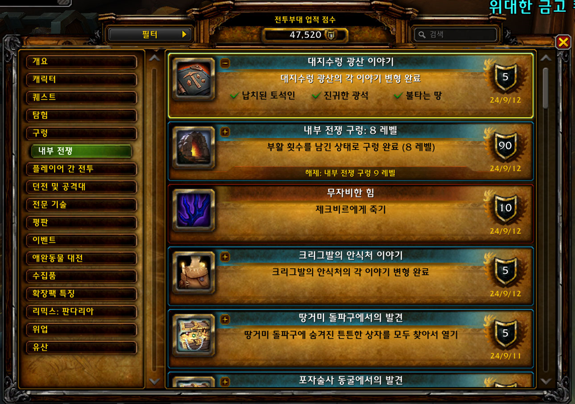 | [와우업적]일몰의 성소 이야기 (0) | 2024.09.12 |