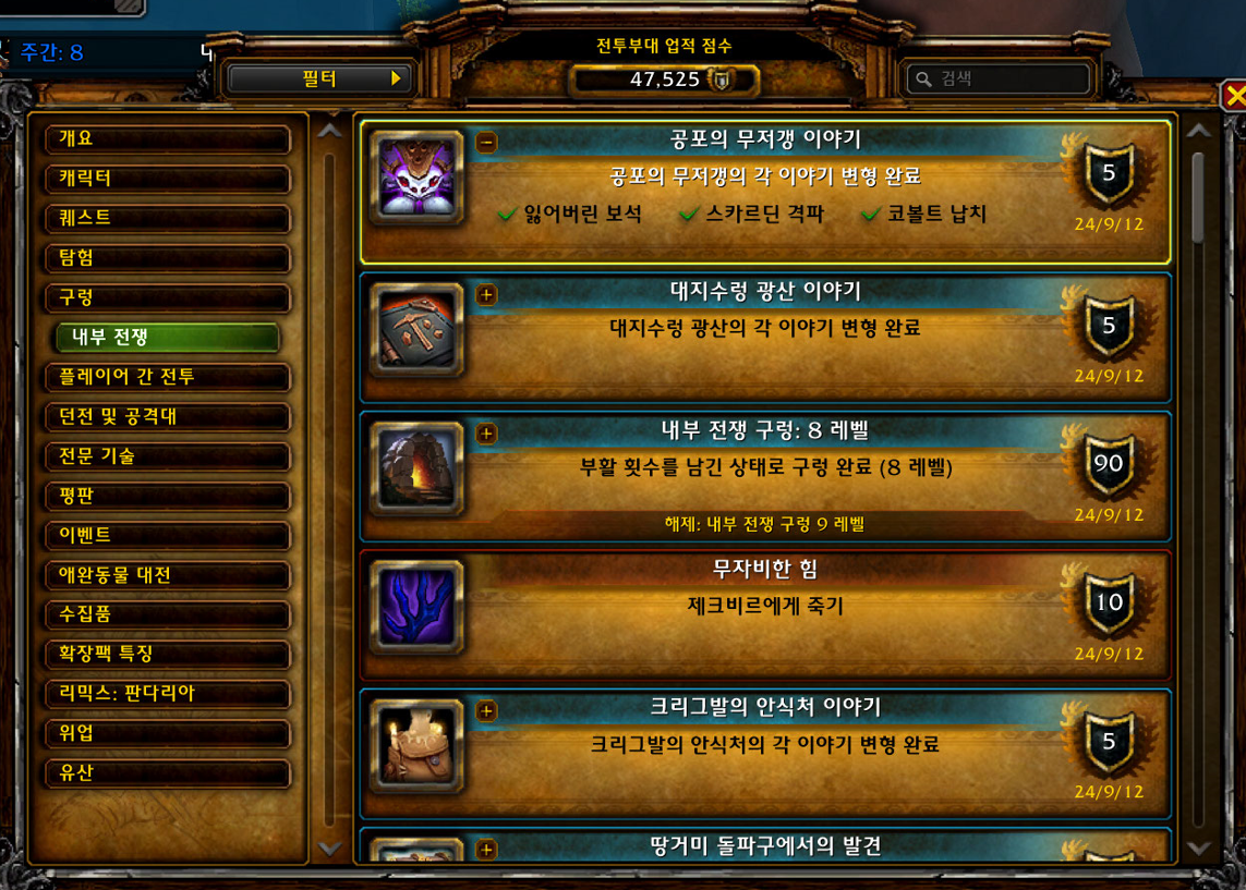 공포의 무저갱 이야기 업적은 내부전쟁 확장팩 업적으로 공포의 무저갱 구렁에서 하는 업적입니다.