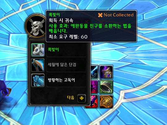 알더린과 미니르 지혜난이도를 클리어하면 쪽빛이라는 애완동물을 획득합니다.