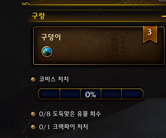 구덩이 이야기 업적은 내부전쟁 확장팩 업적으로 구덩이 구렁에서 하는 업적입니다.